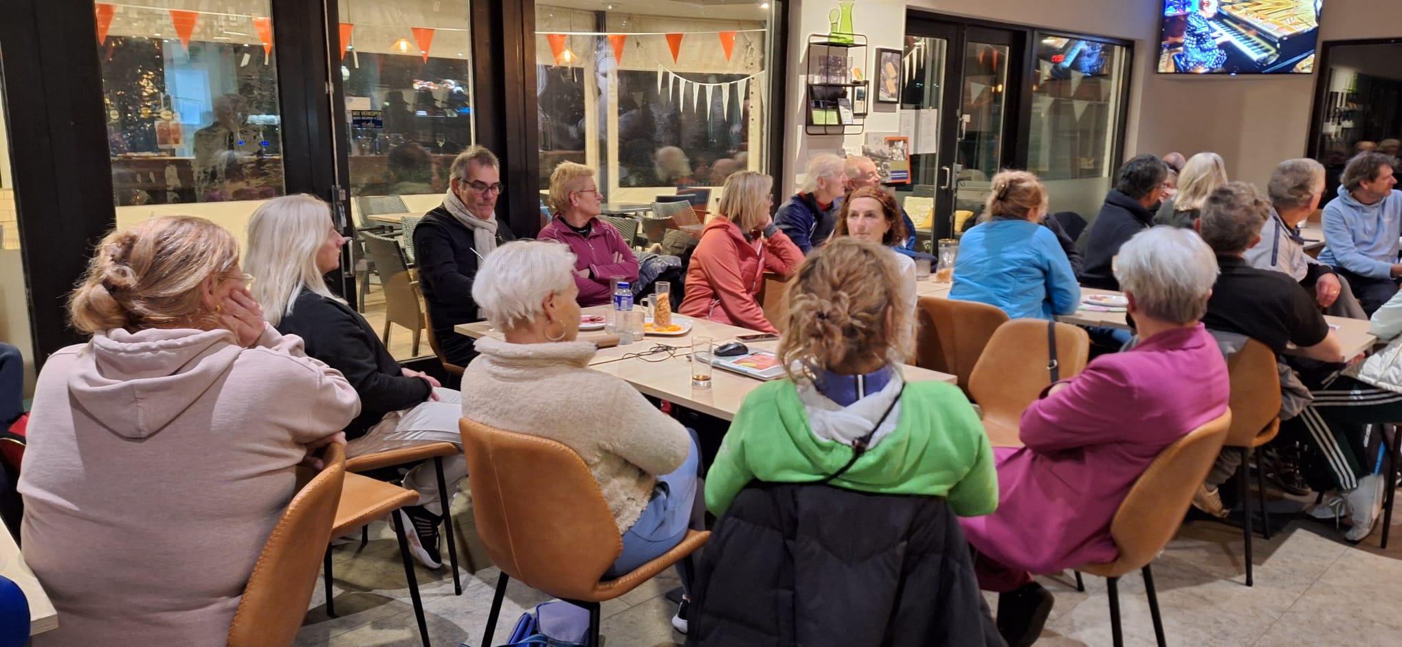 Het was ook nog eens een prachtige zonnige dag, wat zorgde voor een opperbeste sfeer. Het gezelschap was gevarieerd: leden die al heel lang lid zijn, maar ook veel nieuwe leden zagen hier hun kans schoon om op een leuke manier kennis te maken met de vereniging. Na afloop zorgde Johan van de Vijzel met zijn zangkunst voor een prachtige musical noot. Karin, Karin en Marijke: hartelijk dank dat jullie dit hebben georganiseerd en we zien nu al uit naar het vervolg hiervan op de tweede zondag van januari 2026.