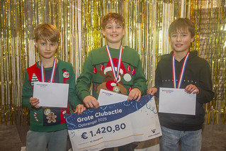Tijdens het jeugdkerstdiner op vrijdag 12 december werden de drie jongeren die de meeste loten verkochten, in het zonnetje gezet en zij kregen dan ook een cadeaubon. Op de tweede/derde plaats stonden Naud (links op de foto met de drie jongens) en Jelle (rechts) met elk 78 verkochte loten. Liam in het midden houdt hier met trots de eindscore vast! Alle kinderen die meer dan 25 loten wisten te slijten, kregen op 12 december een mooie medaille. Op de groepsfoto staan enkelen van hen: naast de genoemde topdrie zijn dat Sem, Sem en Felipa (staand) en Jette en Anna (zittend).