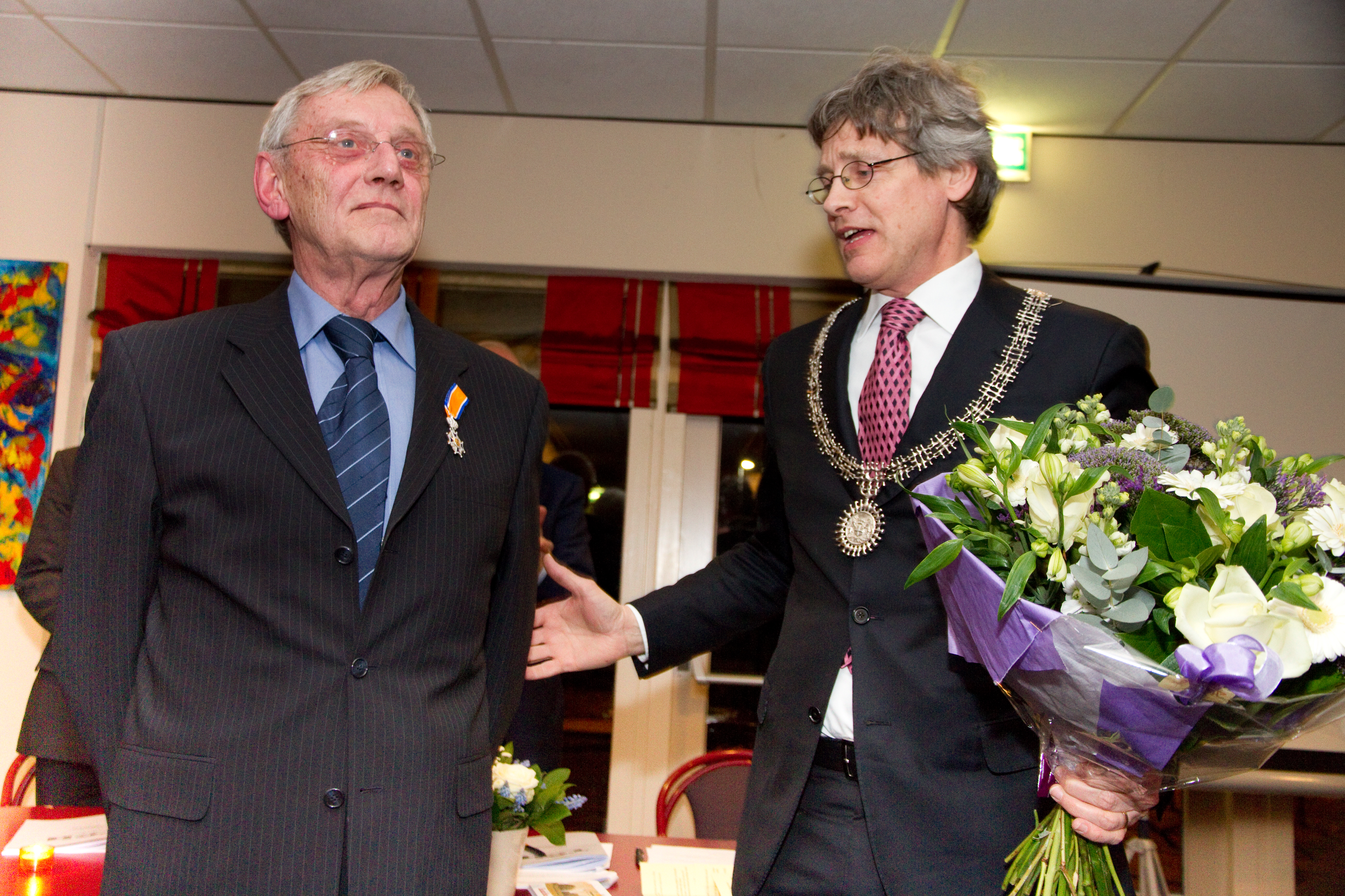 Foto 2. Burgemeester Lucas Bolsius maakte op 2 februari 2012 bekend dat Kees lid was geworden in de Orde van Oranje-Nassau.