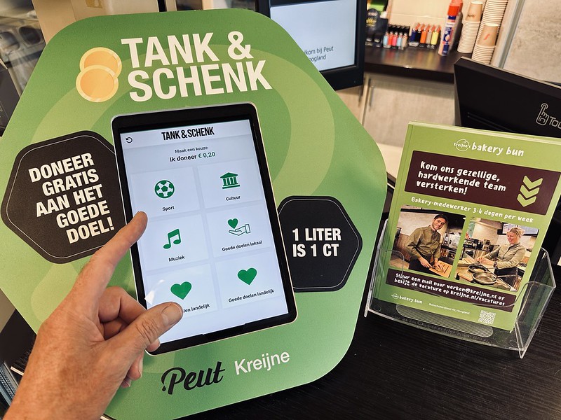 “Het schenken aan een goed doel bij ons tankstation gaat verbluffend eenvoudig met een paar klikken op de iPad. Je hoeft daarbij geen persoonlijke gegevens in te vullen, dus de donatie is anoniem”, aldus Rosan Kreijne.